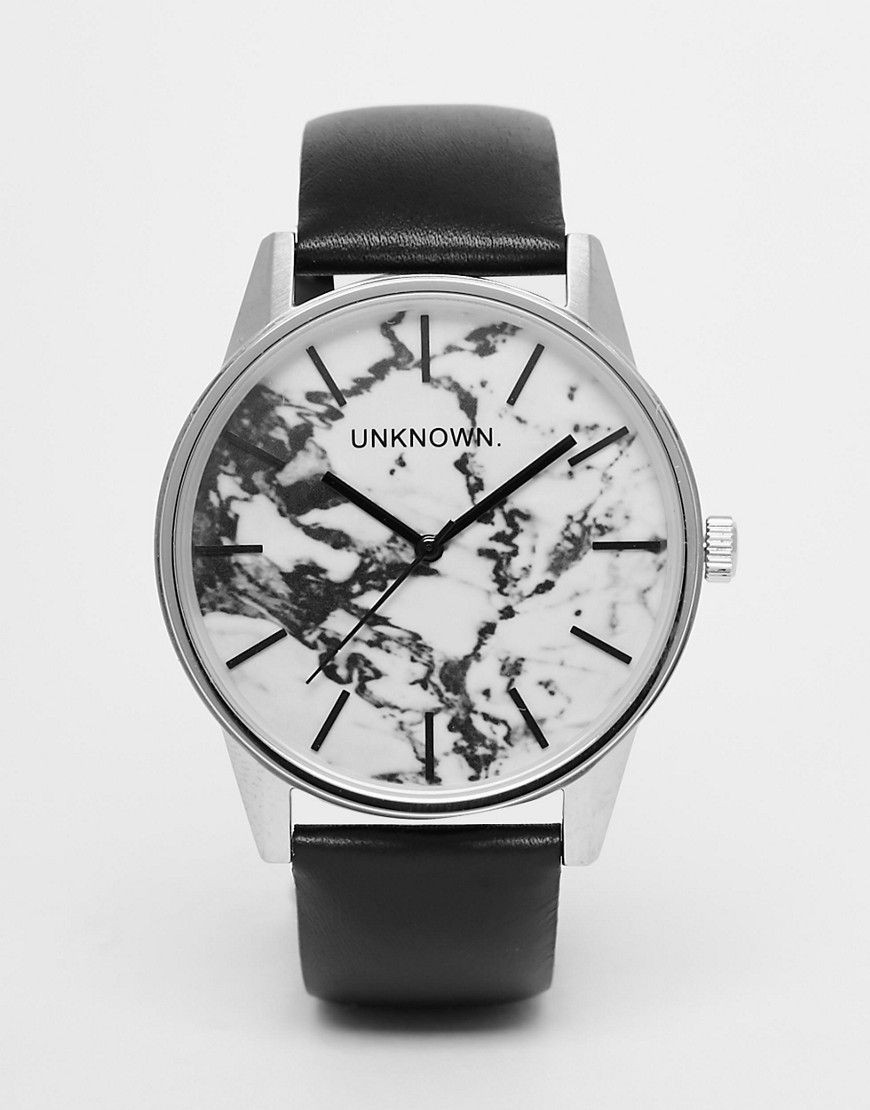 • UNKNOWN - Montre de ville 39mm avec bracelet en cuir et cadran marbré - Noir