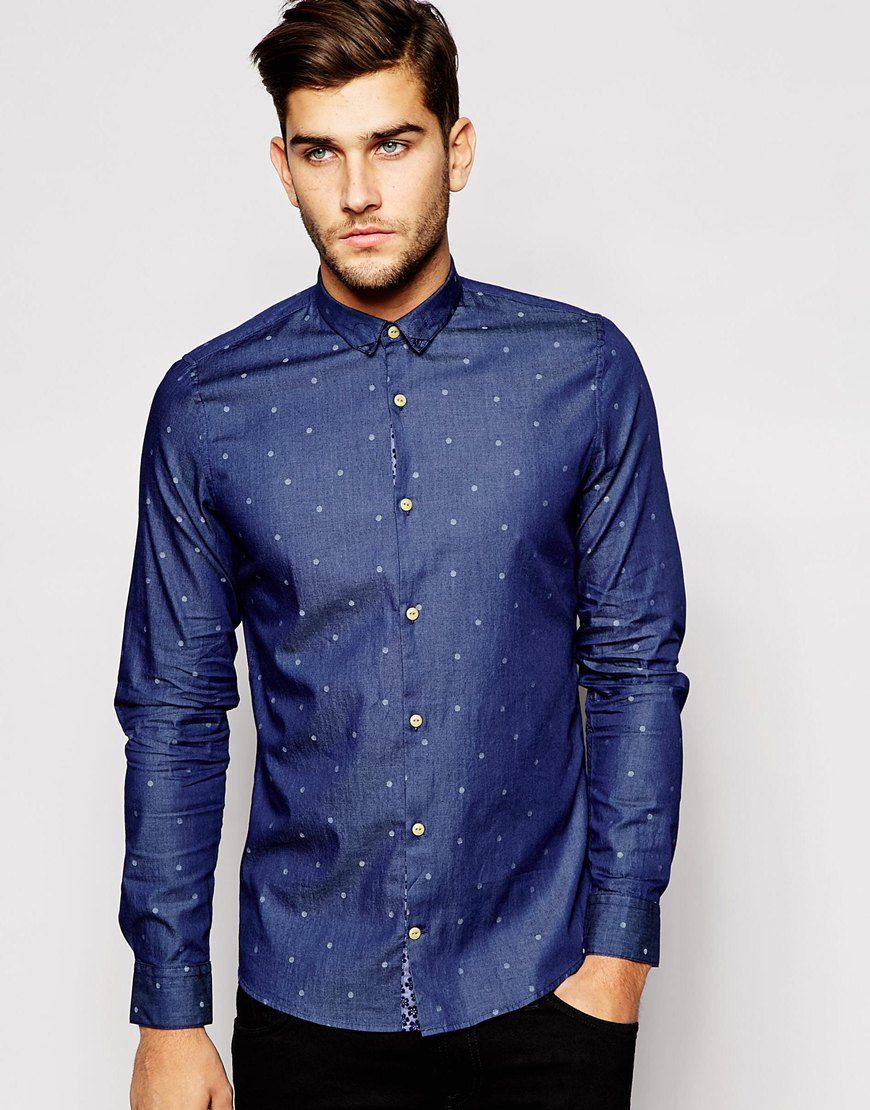 Vito - Chemise en chambray à pois - Bleu