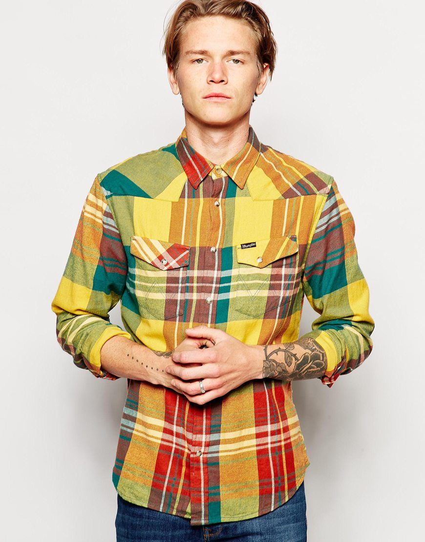 Wrangler - - Chemise en flanelle à carreaux style Western - Ocre rouge