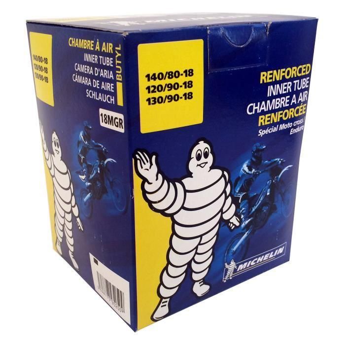 MICHELIN Chambre ? air 18MGR pour moto. Dimensions : 140/80X18 120/90x18. Taille des pneus - compatibilité : 130/80-18 140/80-18 120/90-18 130/90-18 100/100-18 110/100-18.