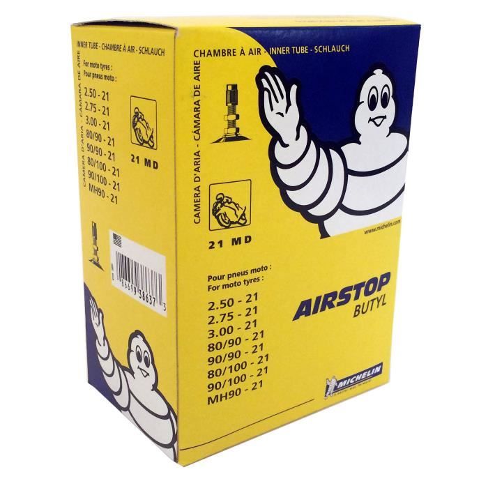 MICHELIN Chambre ? air 21MD pour moto. Dimensions : 250-300 80-90/90-100x21. Taille des pneus - compatibilité : 2.50-21 2.75-21 3.00-21 MH90-21 80/90-21 90/90-21 80/100-21 90/100-21.
