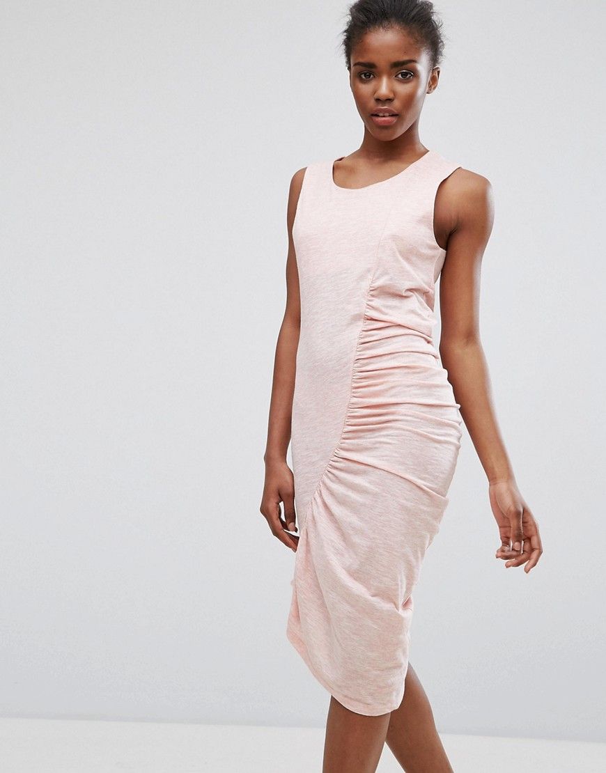"Robe par Minimum, Tissu lisse, Encolure dégagée, Modèle asymétrique, Coupe slim près du corps, Lavage en machine, 68% coton, 32% polyester, Le mannequin mesure 168 cm (5'6") et porte l'article en taille UK S / EU S / US XS."