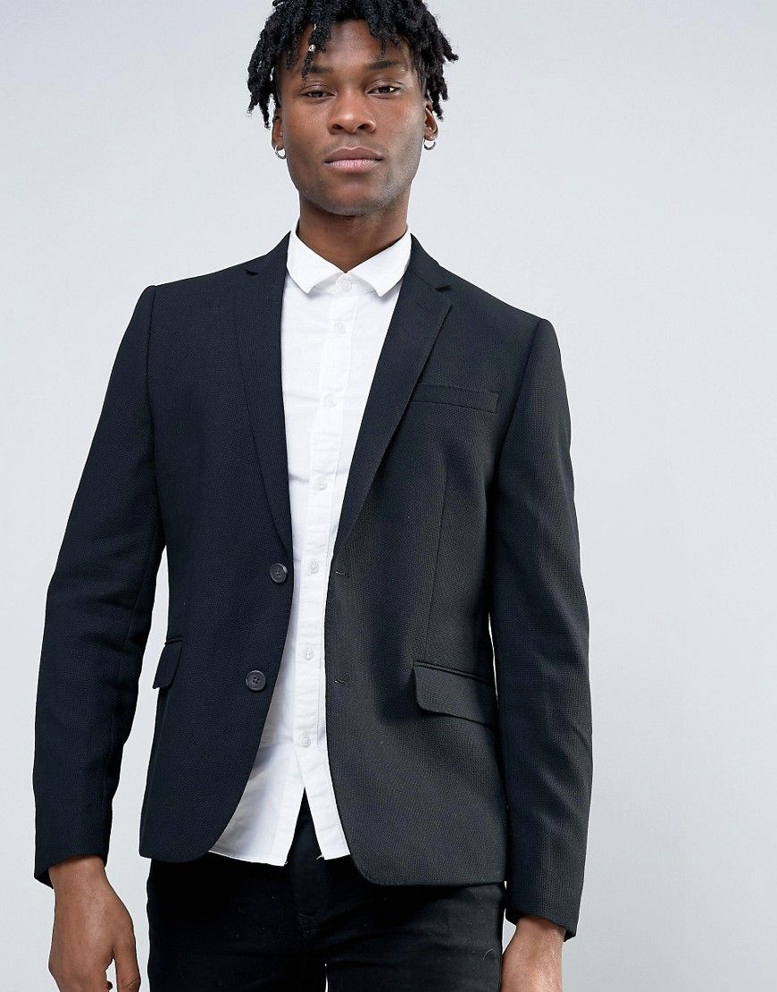 • Minimum - Veste de costume ajustée en laine mélangée fini gaufré - Noir