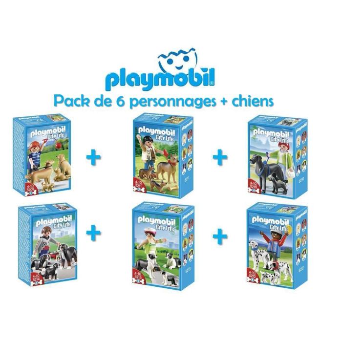 Achetez Pack 6 Personnages + chiens, Playmobil sur Pickture.