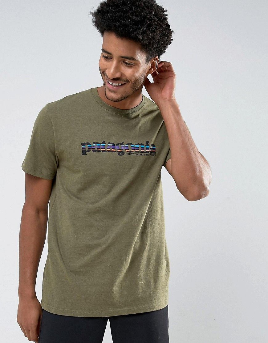 "T-shirt par Patagonia, Jersey doux au toucher, Ras du cou, Logo Patagonia sur la poitrine, Manches courtes, Coupe classique taillant normalement, Lavage en machine, 50% coton, 50% polyester, Le mannequin porte l'article en taille Medium et mesure 189 cm (6'2,5"). À PROPOS DE PATAGONIA Ready made for the great outdoors, Patagonia create high-quality clothing for the all-round active. Elle s'engage à protéger les sites sauvages qu'elle explore et utilise uniquement du coton bio ou des produits recyclés ou récupérés. And if that wasn't enough, Patagonia's jackets, parkas and sweatshirts look pretty good too."