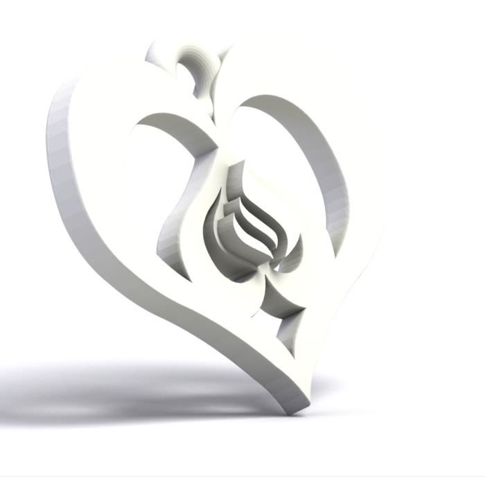 Pendentif Coeur&Flamme 3D