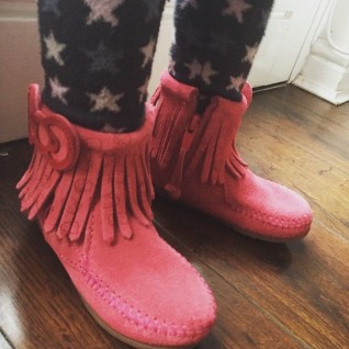 Minnetonka X Hello Kitty Children's Pink Fringed Ankle Boots