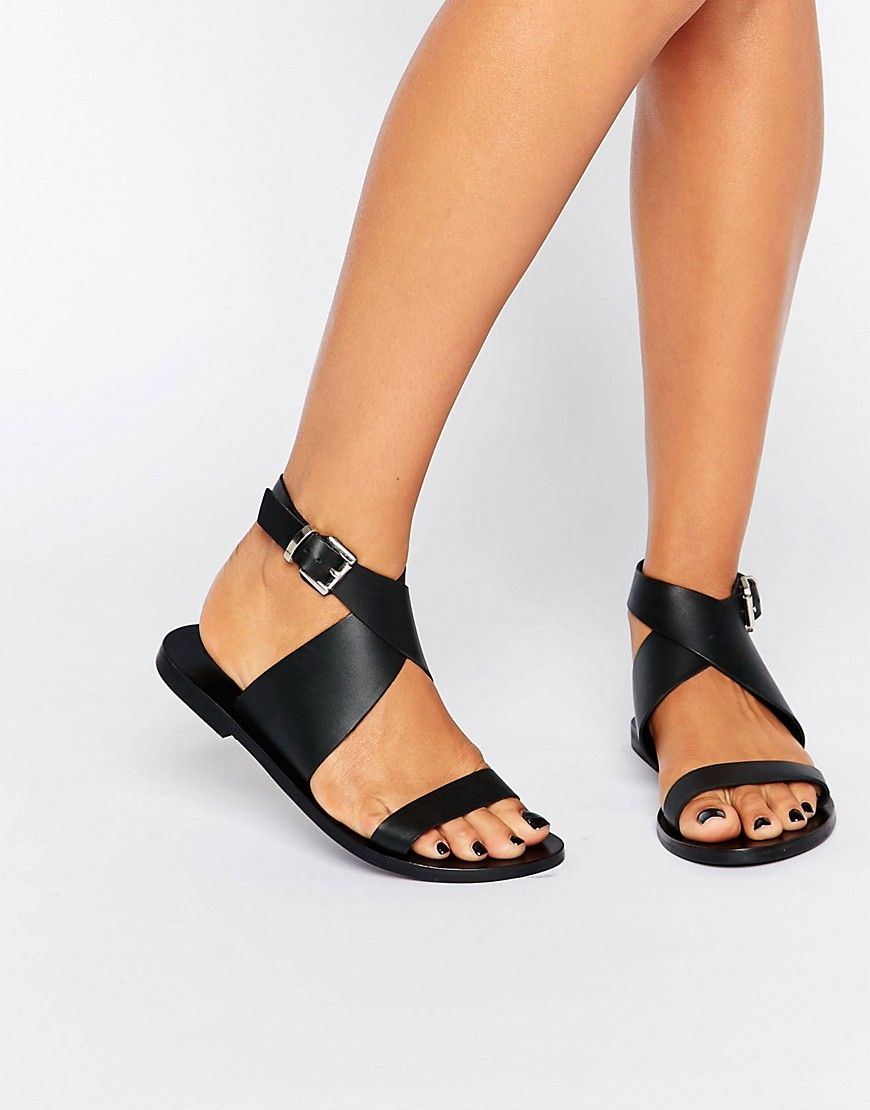• Sol Sana - Kennedy - Sandales plates en cuir à lanières croisées - Noir