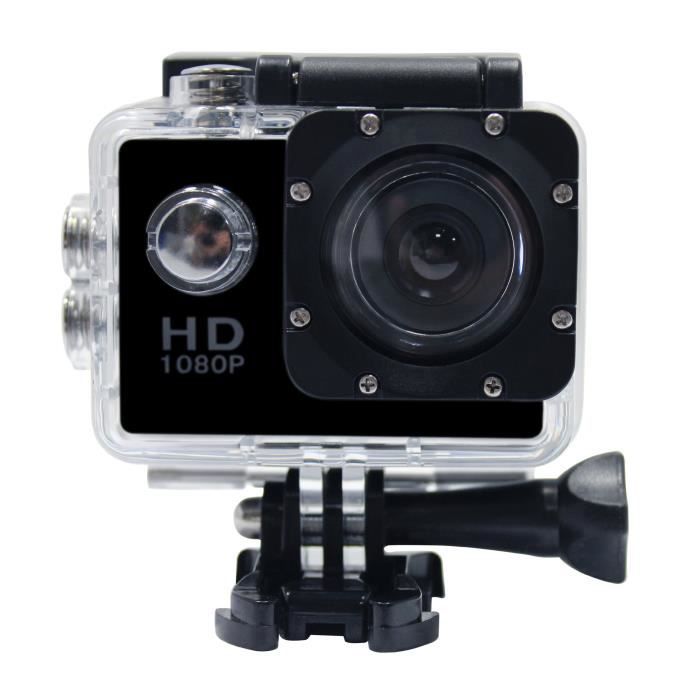 Caméra sport - HD 720P / Grand Angle 90° / Waterproof - Ecran : 2?? LTPS TFT LCD - Video: 1280*720pixels (30 fps) - 2 MP CMOS Sensor - Storage: Micro SD card jusqu?? 32 Gb (non incluse) - Batterie intégrée 750mAh li-ion - Input/Output: mini USB port - Livré avec 12 accessoires dont adaptateur secteur