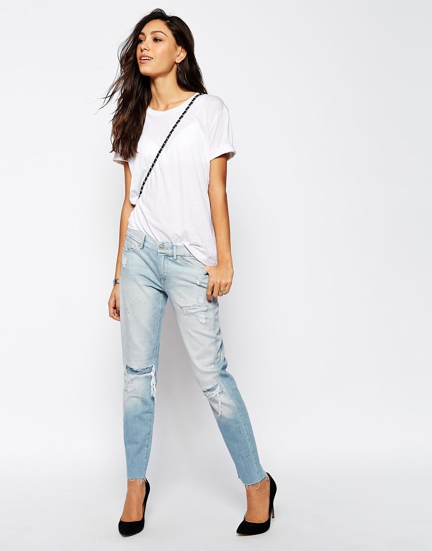 • 7 For All Mankind - Jean skinny longueur cheville avec ourlets bruts et genoux déchirés - Bleu clair