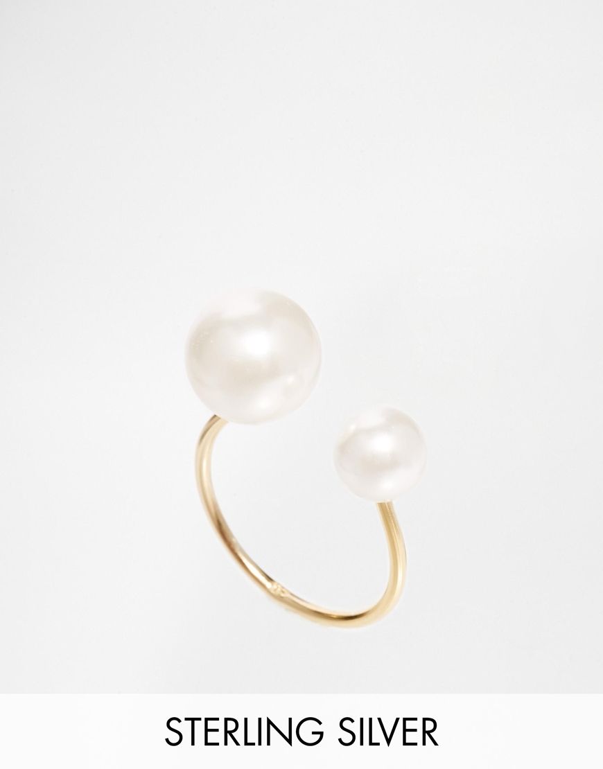 ASOS - Bague ouverte en argent massif plaqué or ornée de perles fantaisie - Crème