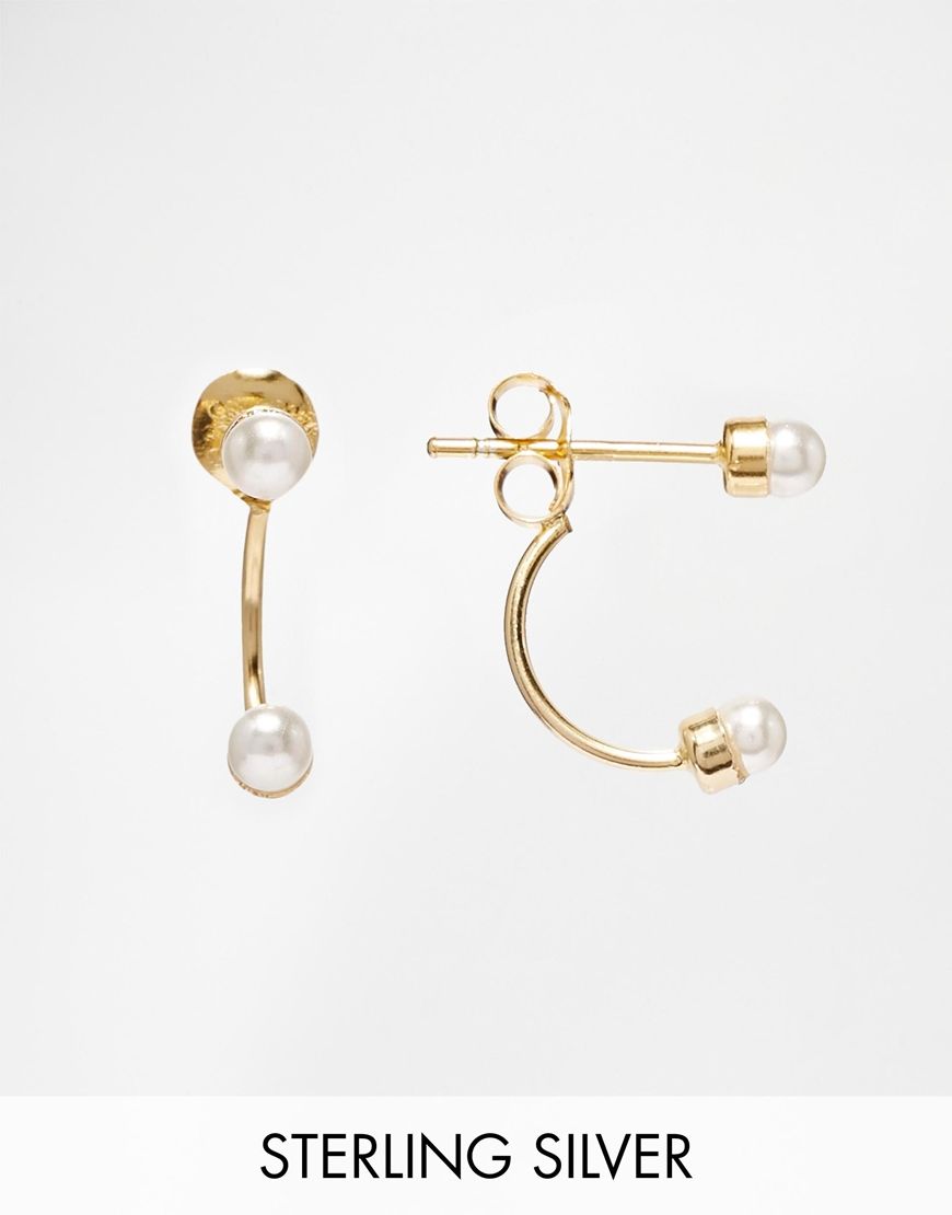 • ASOS - Boucles d'oreilles trapèze en argent massif plaqué or avec fausses perles - Crème