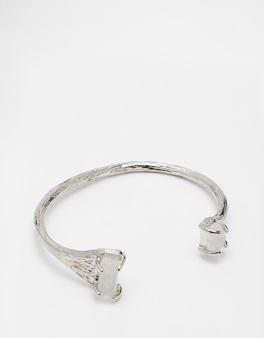 ASOS - Bracelet manchette ouvert avec pierres - Argenté