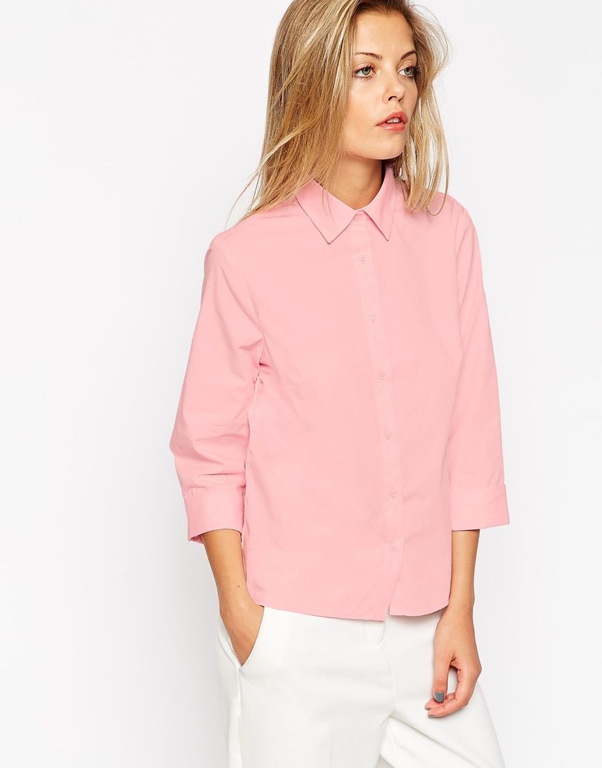 Achetez ASOS - Chemise à manches 3/4, chemise Asos pour femme sur Pickture, dans les tendances ASOS, Chemise, Rose