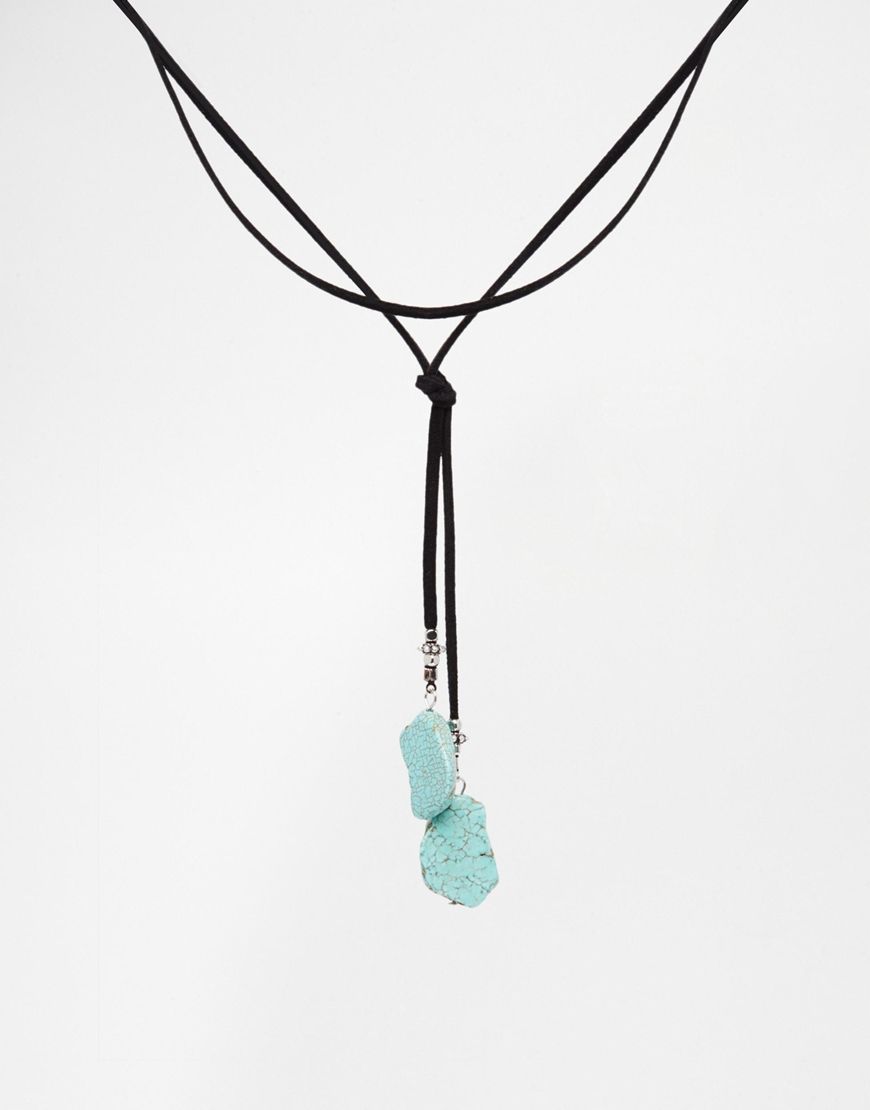 ASOS - Collier ras de cou style lasso avec pierres semi-précieuses - Turquoise