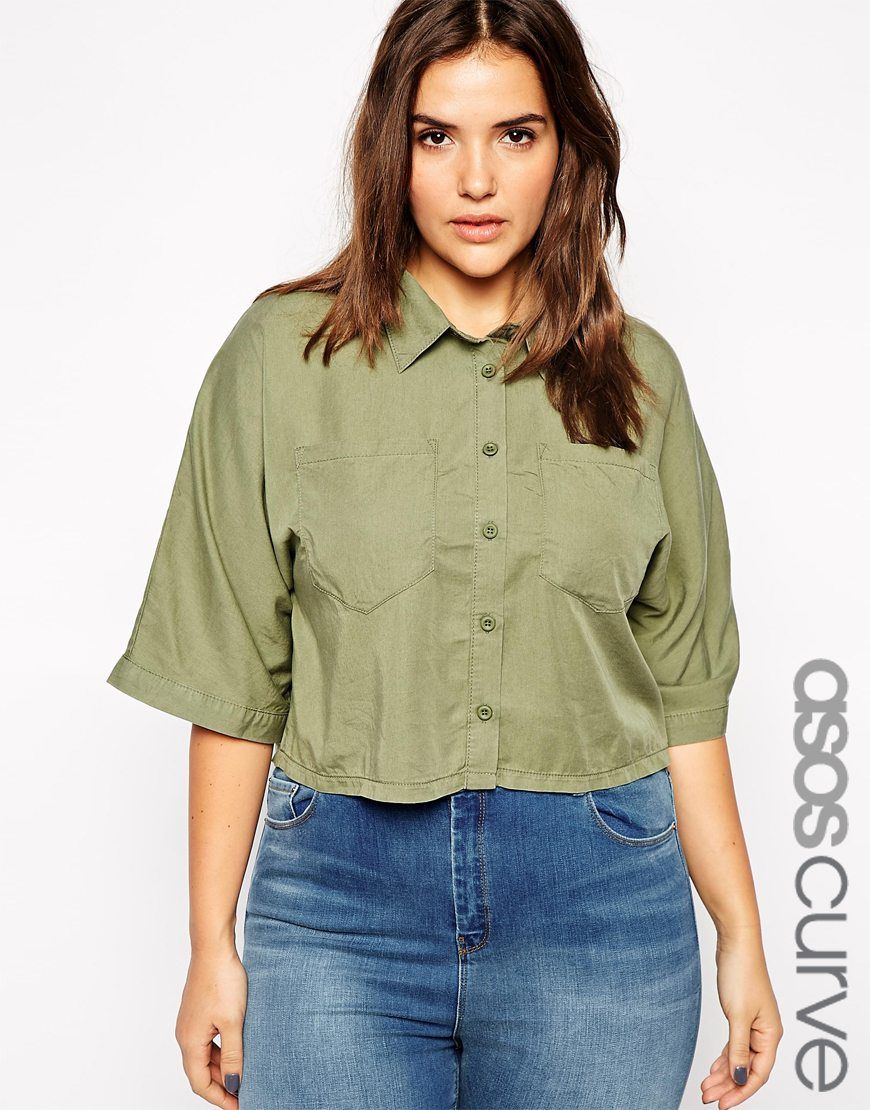 • ASOS CURVE - Chemise dĂ©lavĂ©e fonctionnelle - Kaki dĂ©lavĂ©