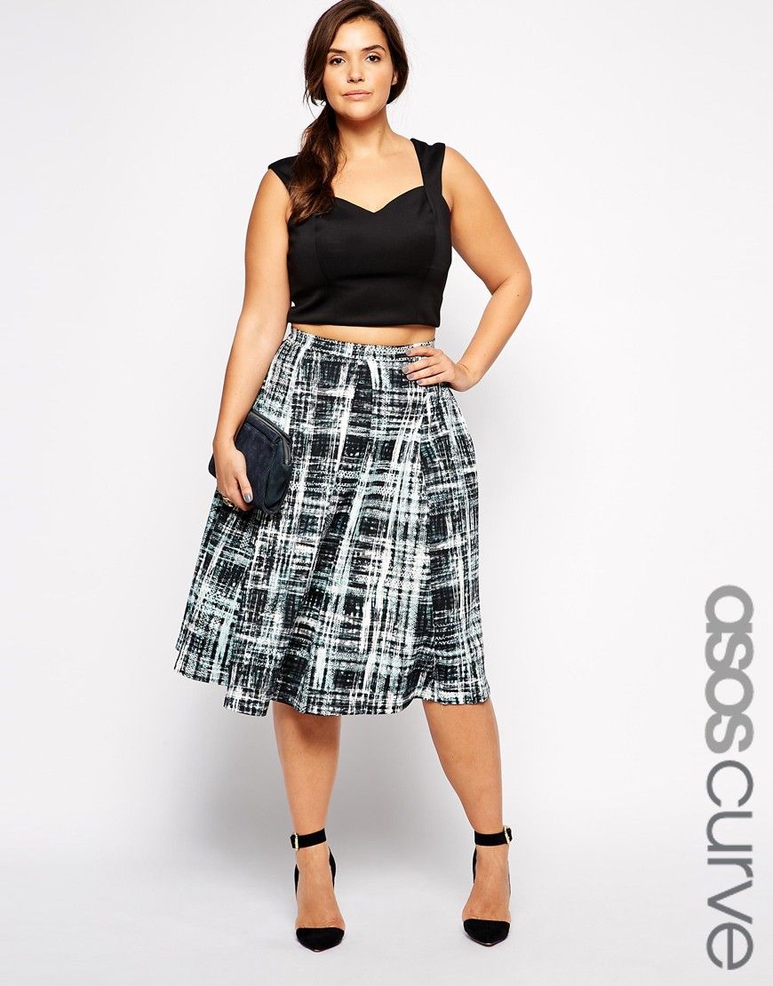 ASOS CURVE - Jupe mi-longue à imprimé carreaux style numérique - Multi