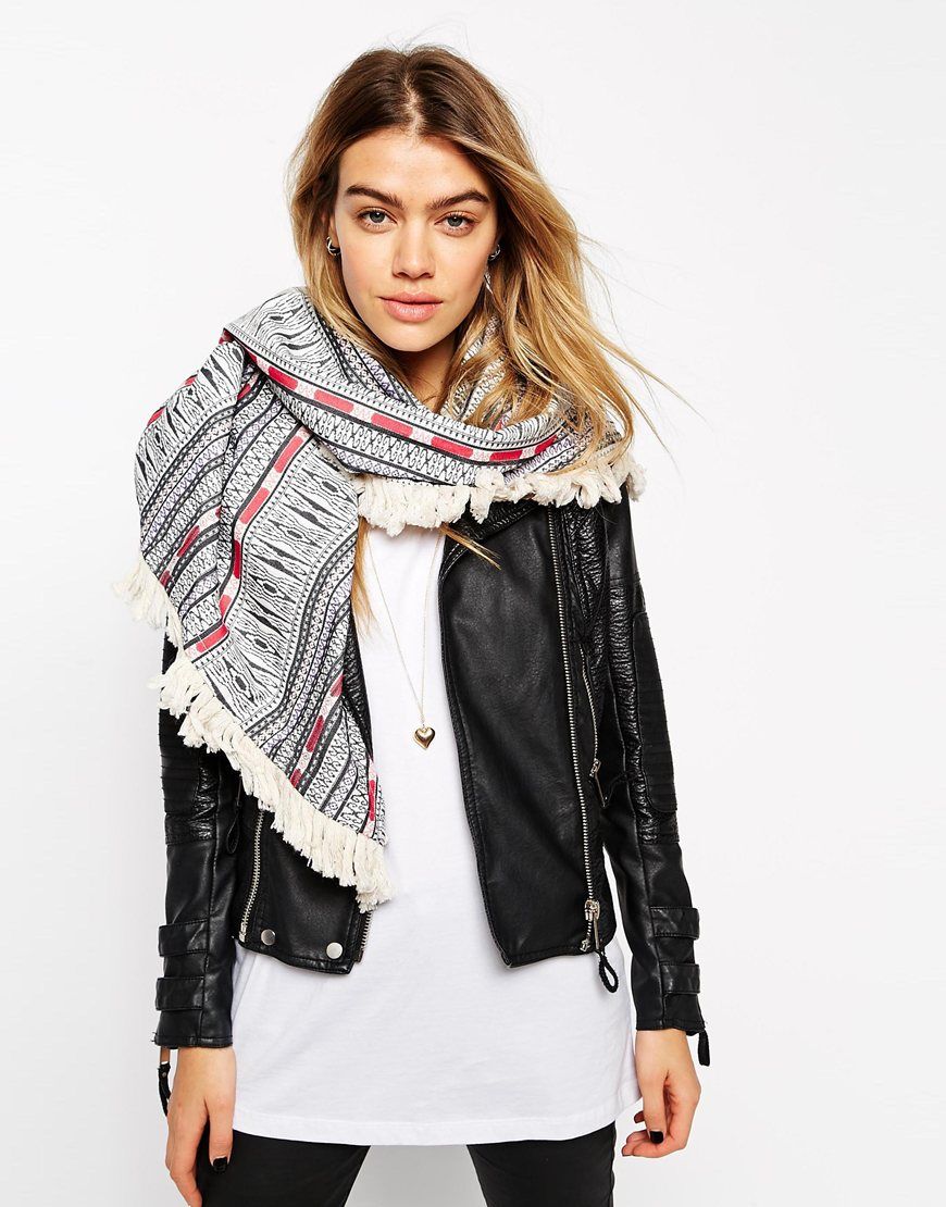 Achetez ASOS - Écharpe triangle oversize à motif, Asos pour femme sur Pickture, dans les tendances ASOS, triangle, oversize, motif, franges, blanche