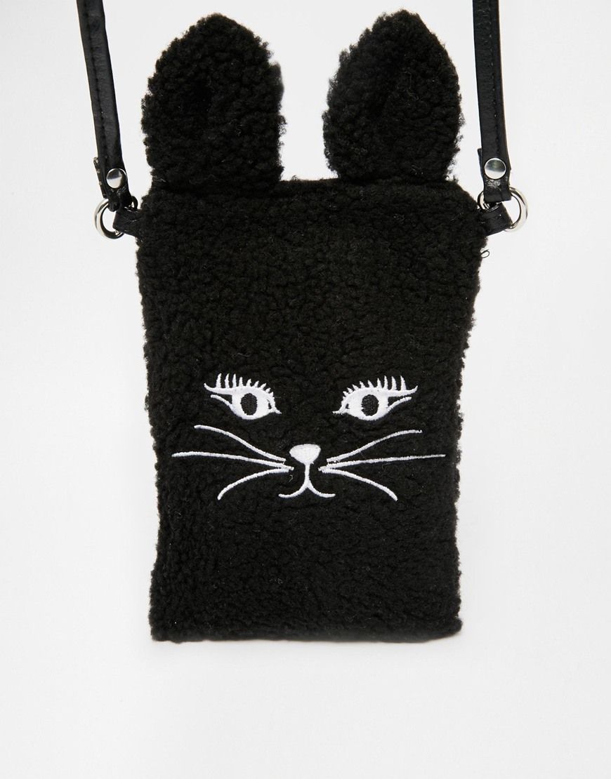 ASOS - Étui pour téléphone portable motif chat duveteux avec bride - Noir