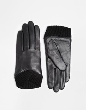 Achetez ASOS - Gants en cuir avec poignet en maille, gants Asos pour femme sur Pickture, dans les tendances ASOS, cuir, maille, Noir