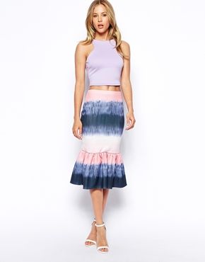 • ASOS - Jupe fourreau en néoprène avec ourlet à basque et imprimé aquarelle dégradé - Multi