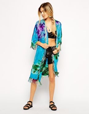 Achetez ASOS - Kimono de plage effet tie-dye à franges, kimono Asos pour femme sur Pickture, dans les tendances ASOS, Kimono, plage, franges
