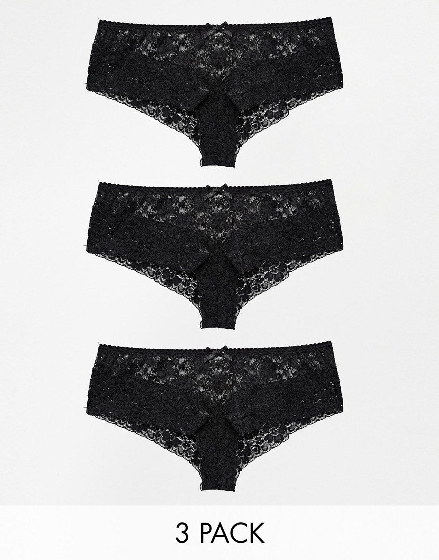 ASOS - Lot de 3 slips sexy en dentelle - Noir - Noir