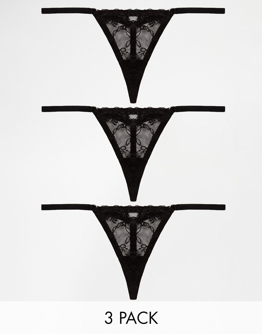 ASOS - Lot de 3 strings en T à l'arrière - Noir - Noir