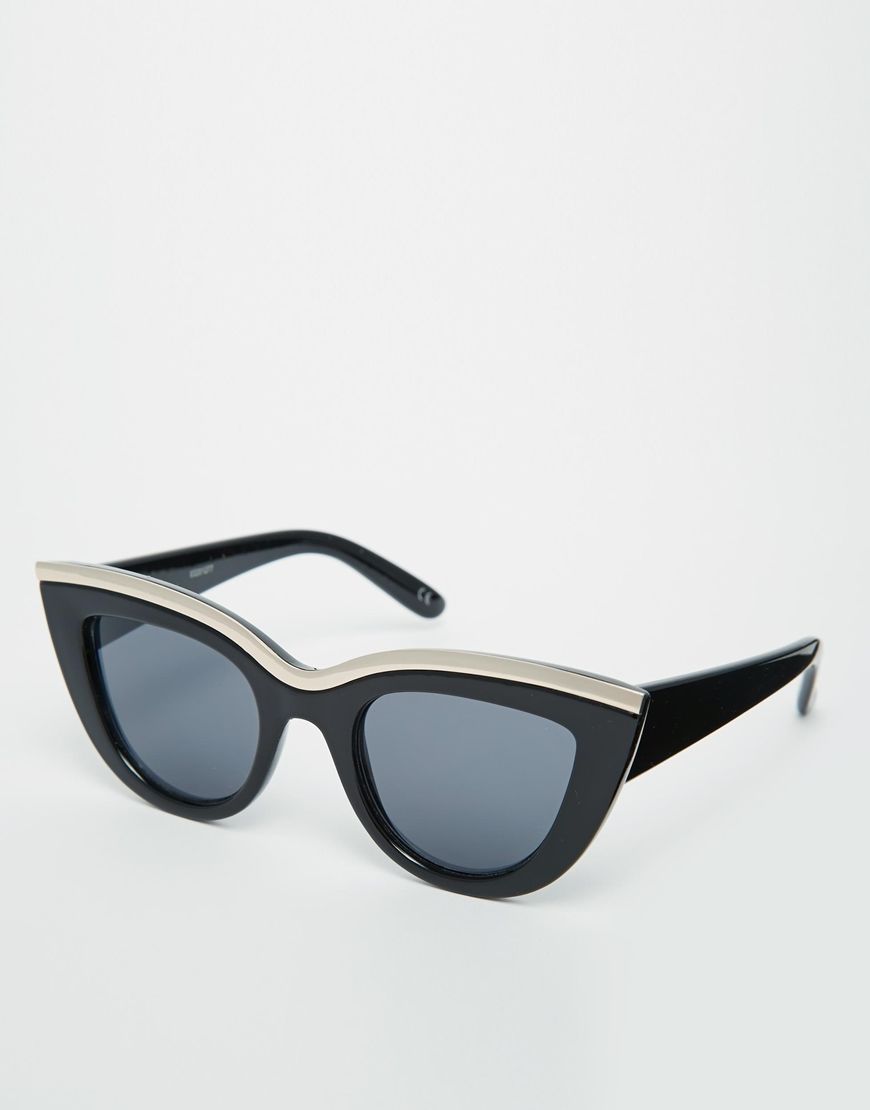 • ASOS - Lunettes de soleil yeux de chat à demi-monture en métal - Noir avec du doré