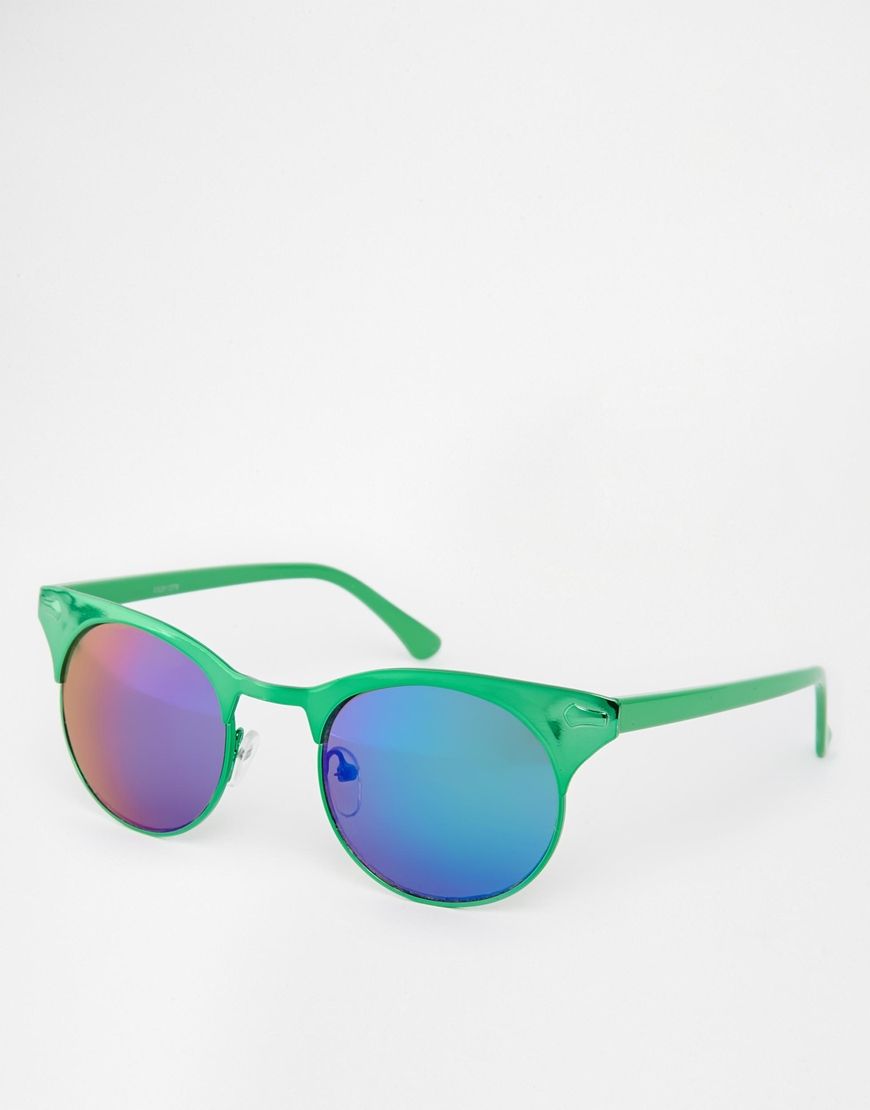 • ASOS - Lunettes de soleil yeux de chat à demi-monture en métal - Vert
