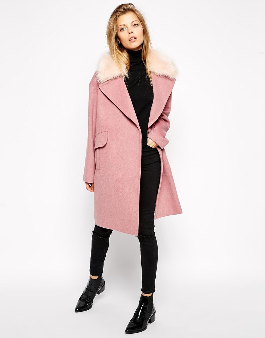 Achetez ASOS - Manteau cocon avec col en fausse fourrure, Asos pour femme sur Pickture, dans les tendances ASOS, Manteau, fourrure, Blanc