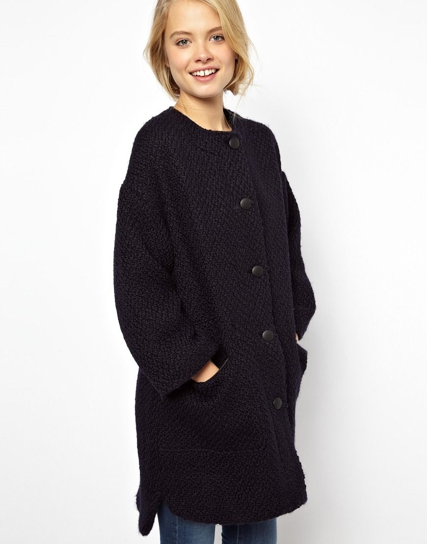 Achetez ASOS - Manteau sans col boutonné sur le devant, Asos pour femme sur Pickture, dans les tendances ASOS, Manteau, Bleu, marine