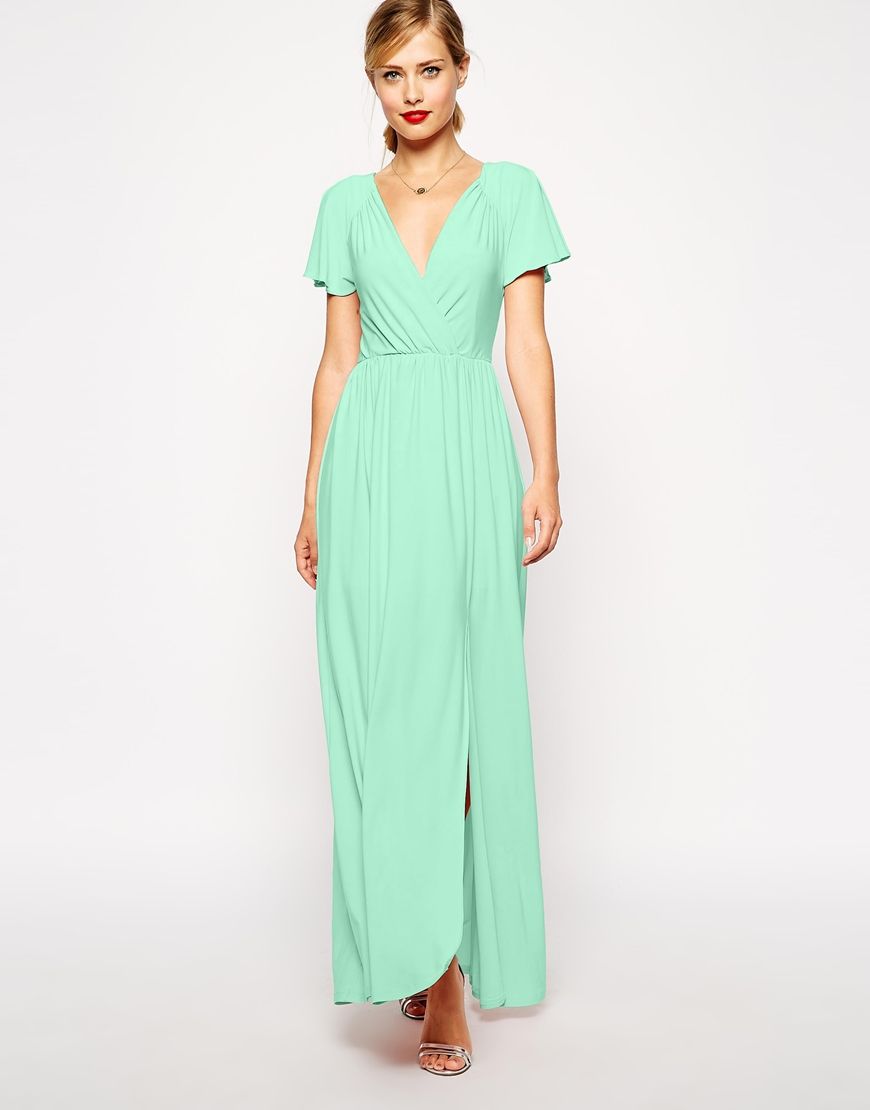 Achetez ASOS - Maxi robe portefeuille à manches évasées, portefeuille robe Asos pour femme sur Pickture, dans les tendances ASOS, Maxi, robe, portefeuille, Nude
