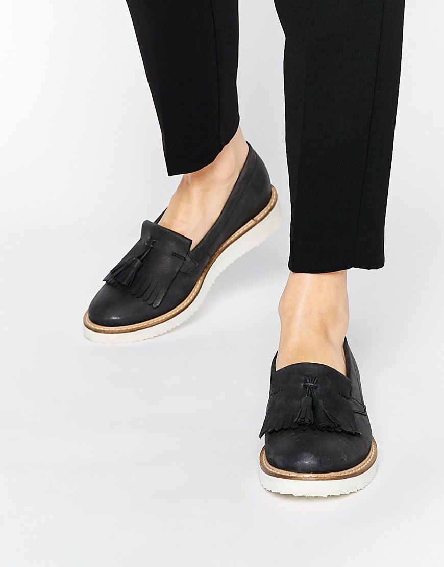ASOS - MENICE - Chaussures en cuir à semelle plateforme et glands - Noir