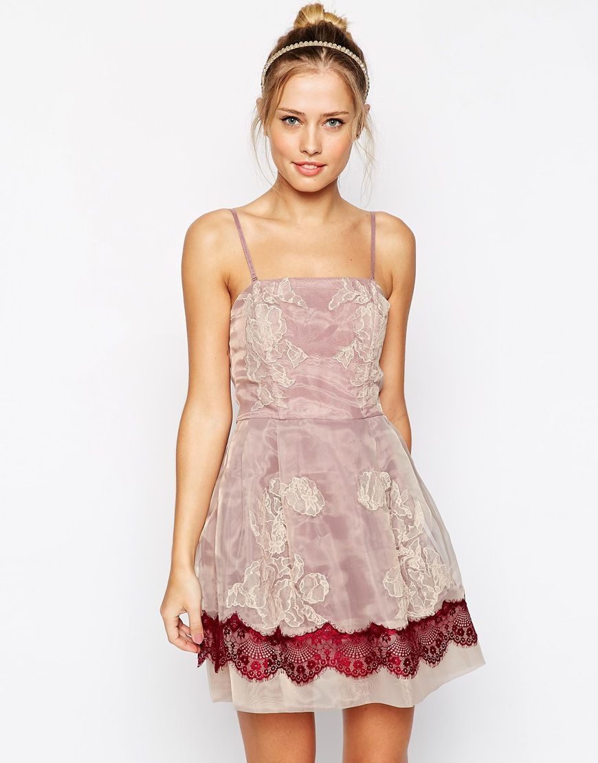 • ASOS - Mix and Match - Robe en dentelle douce coupe bandeau avec organza - Lilas d'hiver