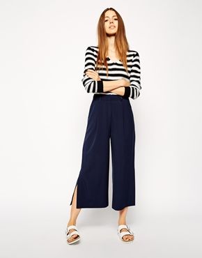 Achetez ASOS - Pantalon large mi-long avec ceinture, pantalon ceinture Asos pour femme sur Pickture, dans les tendances ASOS, Pantalon, ceinture, Bleu, marine