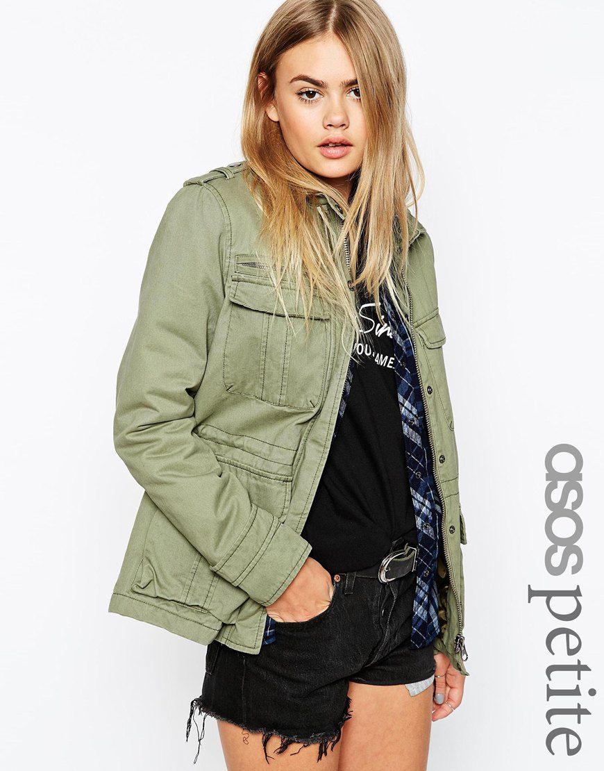 • ASOS PETITE - Veste en coton délavé à détail fonctionnel et doublure matelassée - Bleu marine