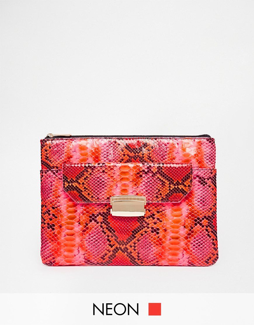 • ASOS - Pochette zippĂ©e coordonnĂ©e avec poche Ă  rabat - Serpent rose