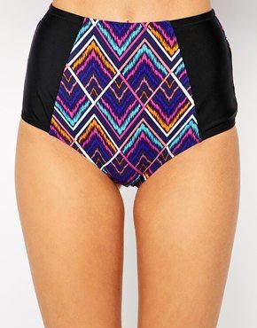 • ASOS - Poitrines généreuses - Bas de bikini taille haute à motif losanges style aztèque - Imprimé aztèque