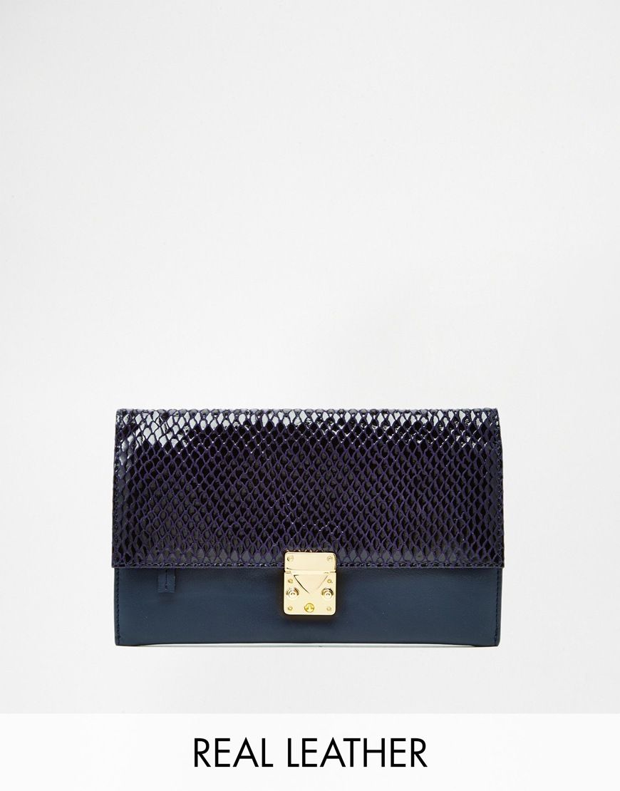 • ASOS - Porte-monnaie de voyage en cuir avec fermoir - Serpent bleu
