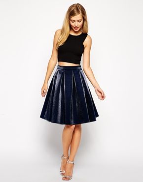 • ASOS Premium - Jupe mi-longue non-tissée métallisée - Bleu