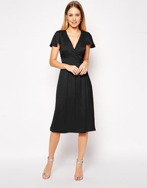 • ASOS Premium - Robe mi-longue en satin avec effet croisé sur le devant - Noir