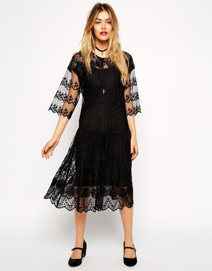 ASOS Premium - Robe style victorien à taille basse et broderies - Noir