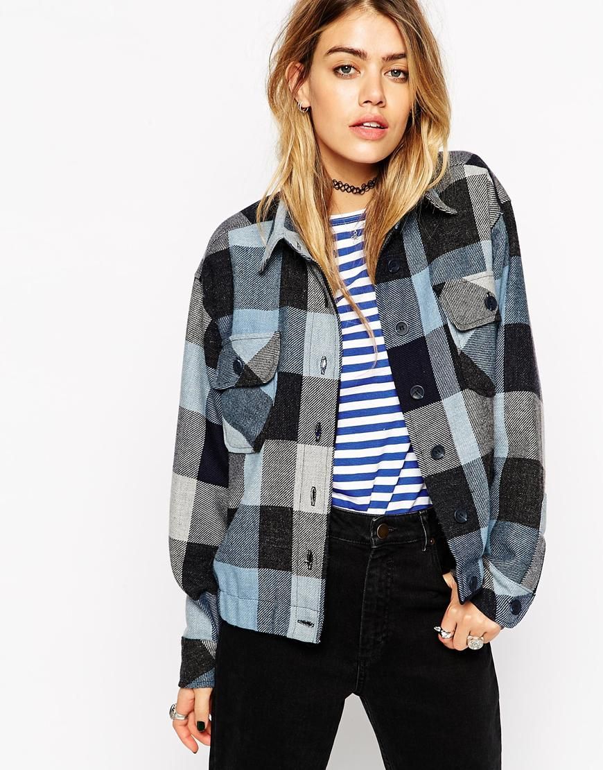 • ASOS Reclaimed Vintage - Blouson aviateur à carreaux - Bleu - Multi