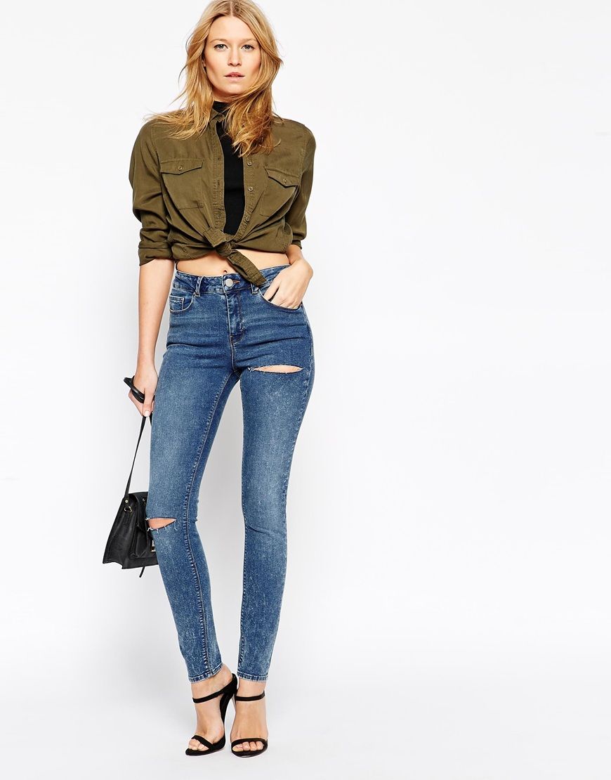 • ASOS - Ridley - Jean skinny avec déchirures sur les genoux et les cuisses - Mae Blue - Bleu Mae