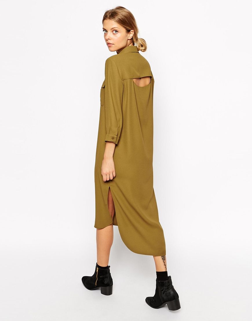 • ASOS - Robe chemise Ă  dos drapĂ© - Kaki