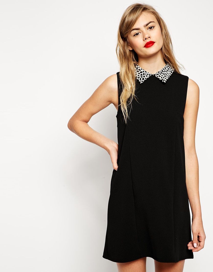 Achetez ASOS - Robe droite texturée avec col à motif, robe Asos pour femme sur Pickture, dans les tendances ASOS, Robe, motif, animal, Noir