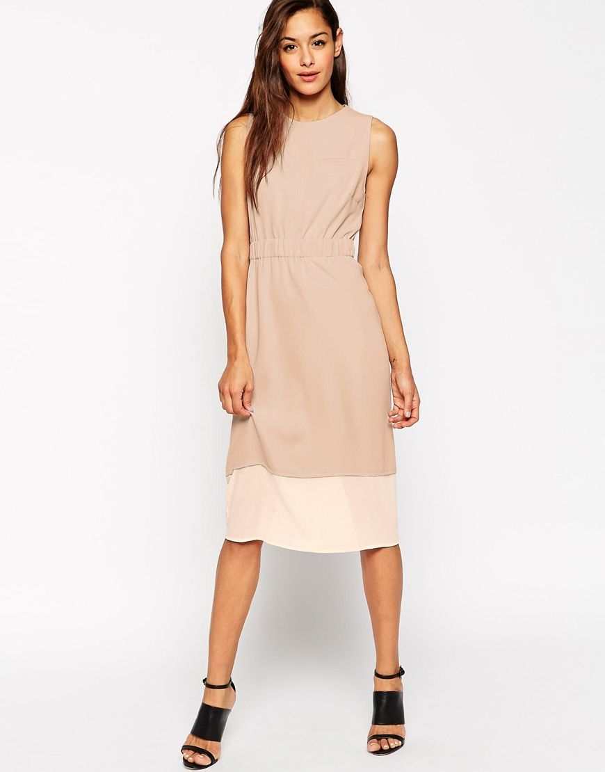 ASOS - Robe fourreau à empiècement transparent et ceinture élastique - Nude