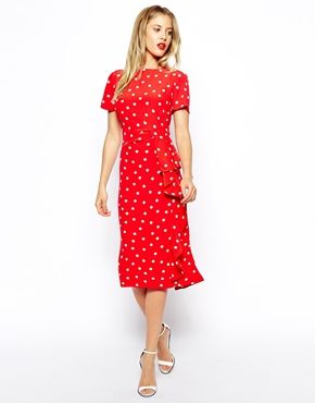 • ASOS - Robe fourreau à pois avec jupe effet cascade - Imprimé rouge