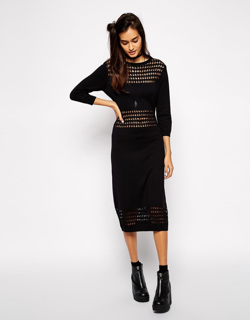 • ASOS - Robe mi-longue en maille à empiècements en tulle - Noir